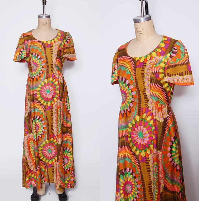 Vintage 60s Mod Off White Hippie Maxi Dress Empire Waist Dress S