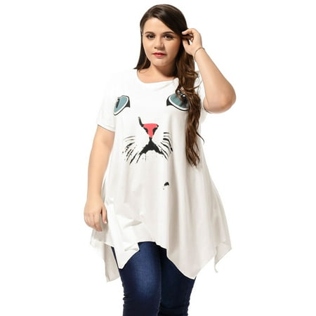 Allegra K Women S Plus Size White Irregular Hem Scoop Neck Dress