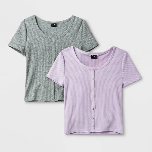 Girls 2pk Ribbed Short Sleeve Top Art Class Gray Lavender Target