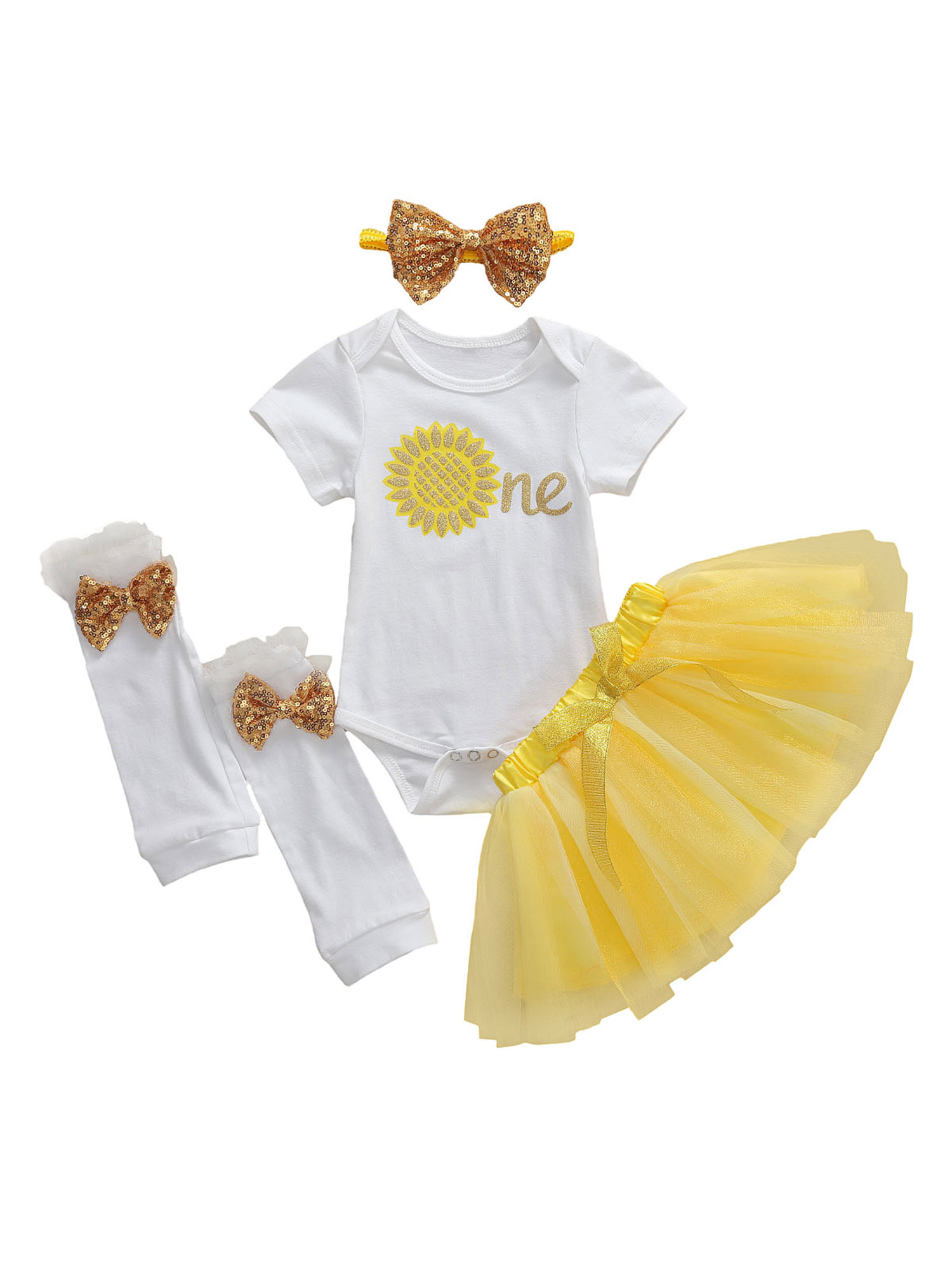 Baby Girls Sunflower Clothes Short Sleeve Off Shoulder Top Tutu