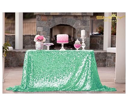 Amazon Com Mint Rectangle Sequin Tablecloth 72x108 Inch Beauty