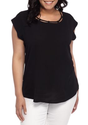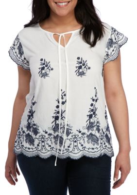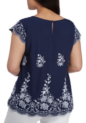 Blu Pepper Plus Size Flutter Sleeve Eyelet Top Belk