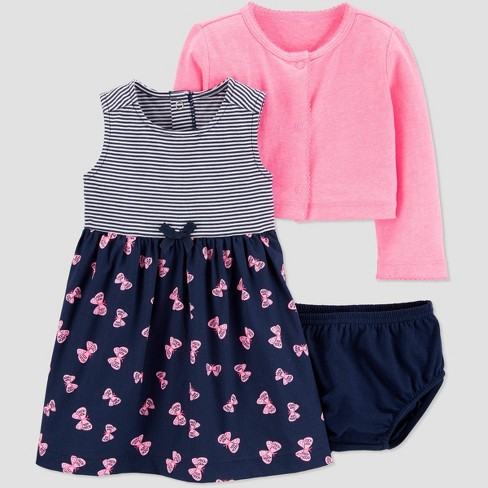 Touched By Nature Toddler Girls Butterflies Organic Cotton Dress Cardigan Pink White 4t Butterflies Pink White