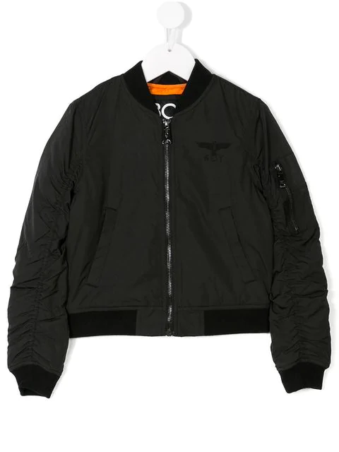 Boy London Kids Ruched Sleeve Bomber Jacket In Black Modesens