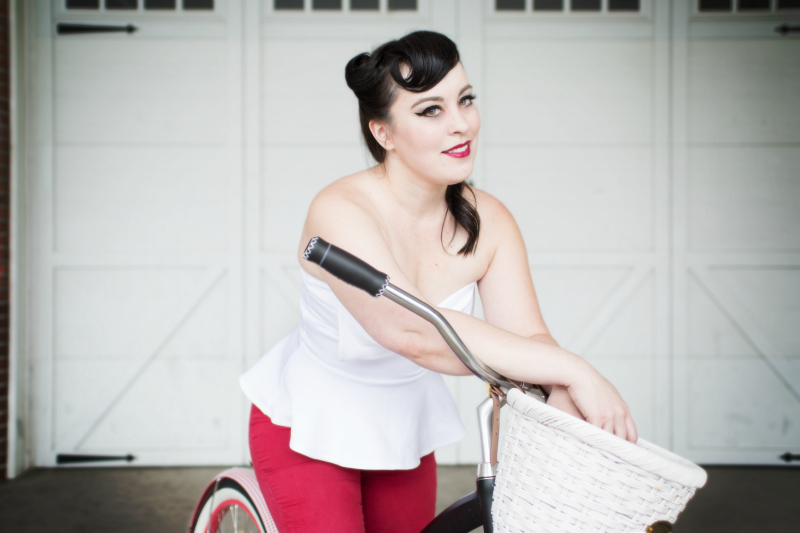 Pin Up Style Portrait Of Beautiful Young Girl In Dress Retro