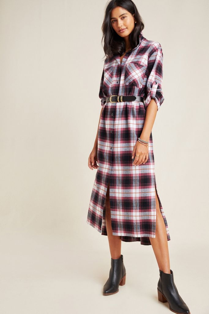 Nwot Cloth Stone Plaid Shirt Dress Anthro Plaid Dress