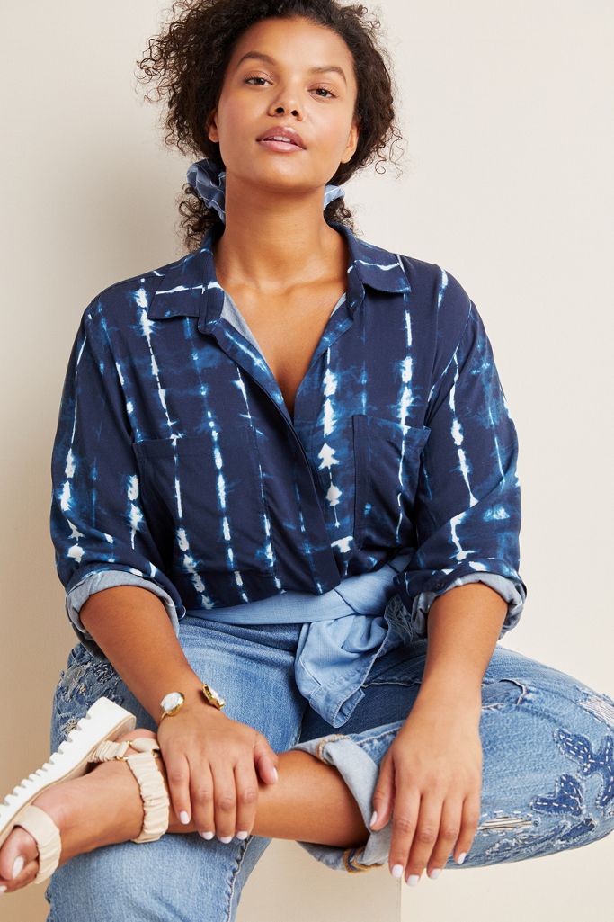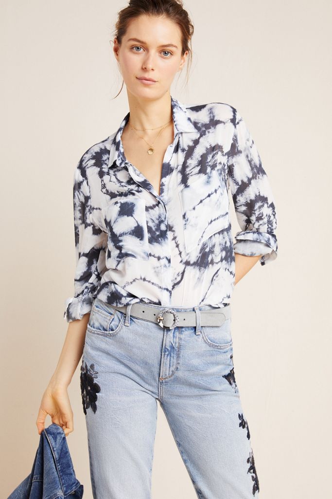 Cloth Stone Tie Dye Button Up Blouse Tie Dye Denim Clothes