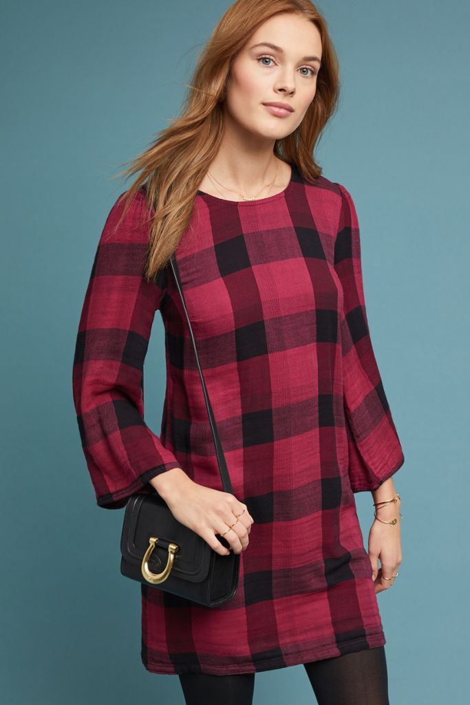 Anthropologie Cloth Stone Versify Plaid Tunic Dress Medium
