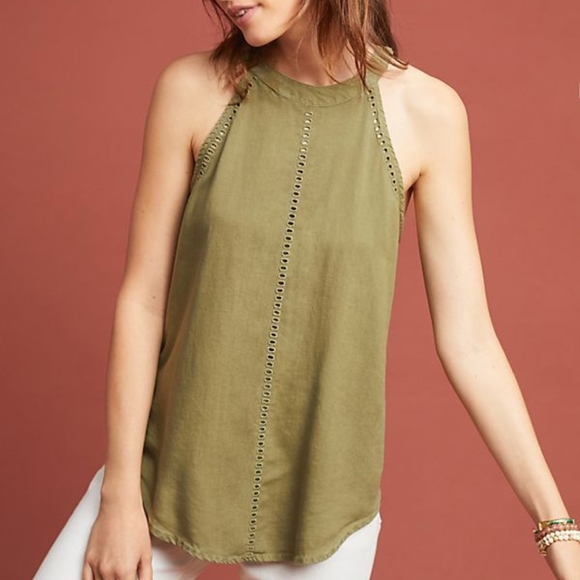 Anthropologie Tops Anthro Cloth Stone Olive Green Cutout Halter