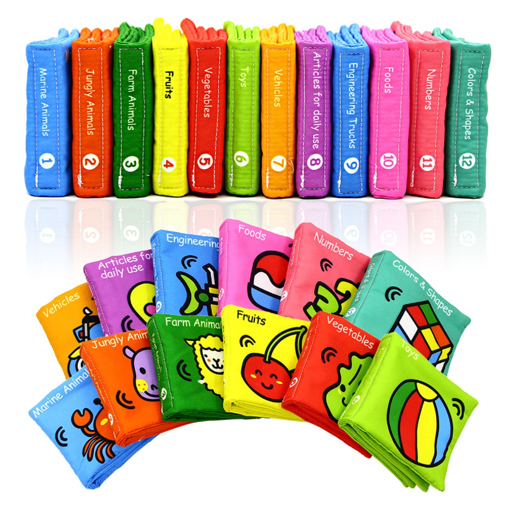 12 Pages Cartoon Educational Cloth Books Baby Toys Infant Kids