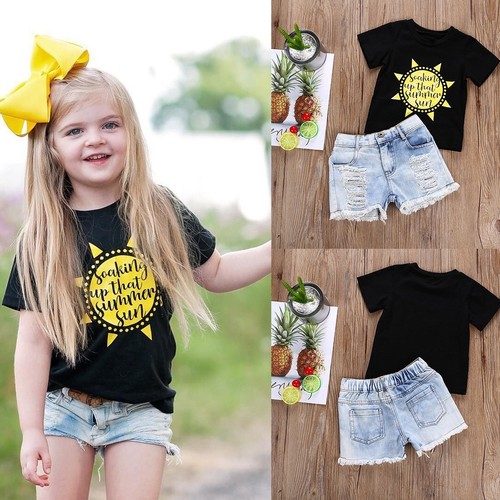 2020 Summer Baby Girls Clothes Outfits Short Sleeve Shirts Hole