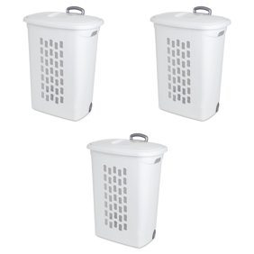 Sterilite White Laundry Hamper With Lift Top Wheels And Pull