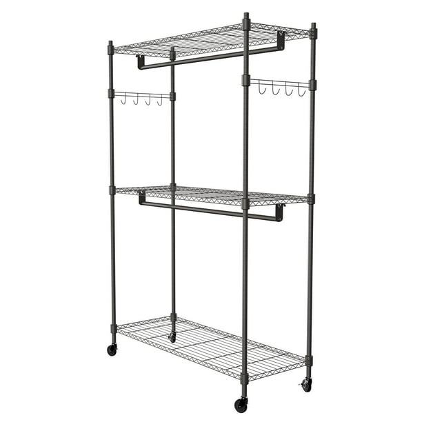 Hifashion 3 Tiers Heavy Duty Wire Shelving Garment Rolling Rack