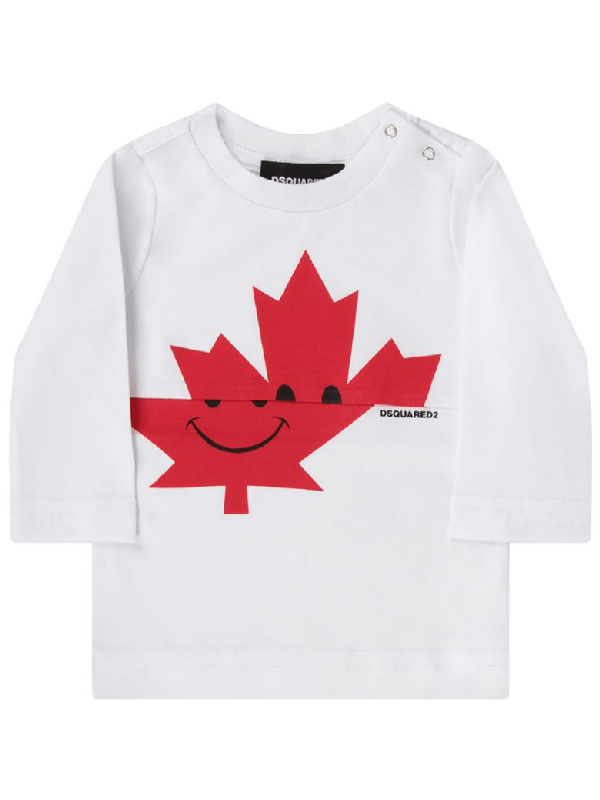 Dsquared2 White Babyboy T Shirt With Red Leaf And Logo Modesens