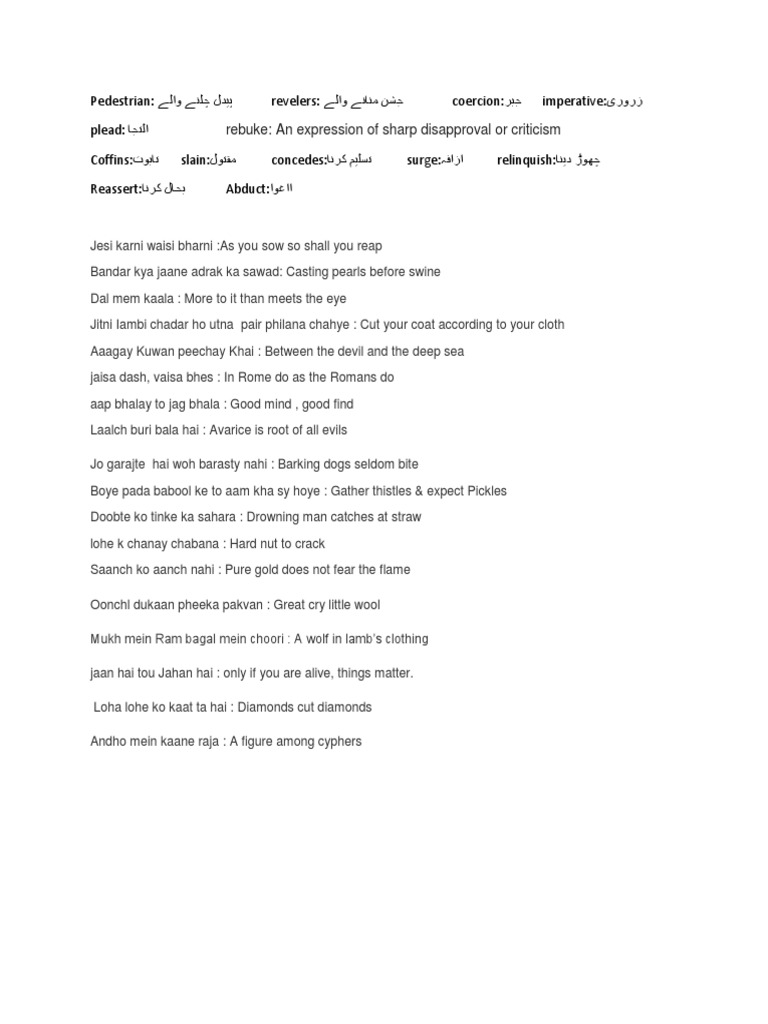 Lecture 04 Proverb With Urdu Translation ضرب المثل اردو ترجمہ کے