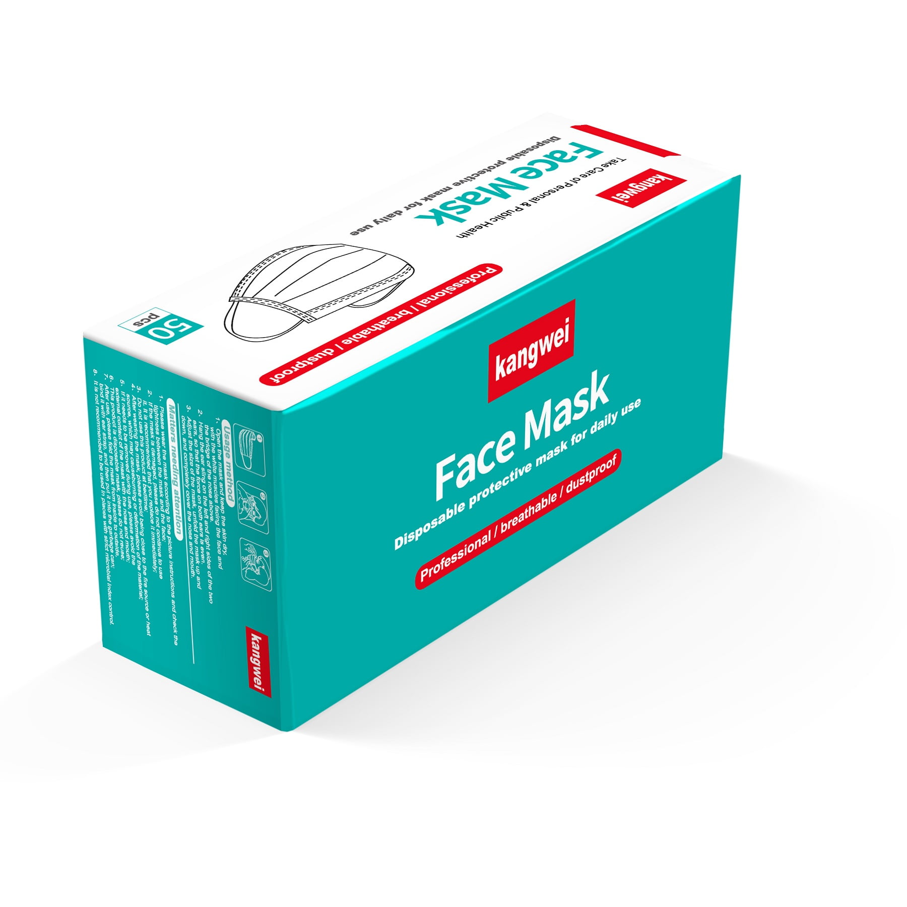 Box Of 50 Disposable Face Masks 3 Ply Breathable Dust Protection
