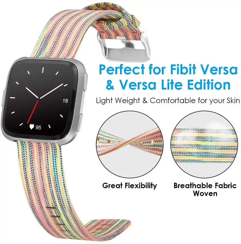 Durable Nylon Canvas Wrist Strap For Fitbit Versa2 2 Smart Watch