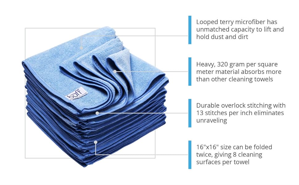 Amazon Com Buff Microfiber Cleaning Cloth Blue 12 Pack