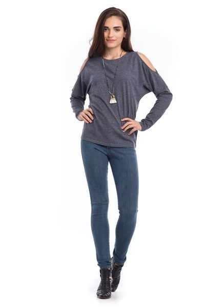Synergy Organic Clothing Flax Cold Shoulder Top Charcoal