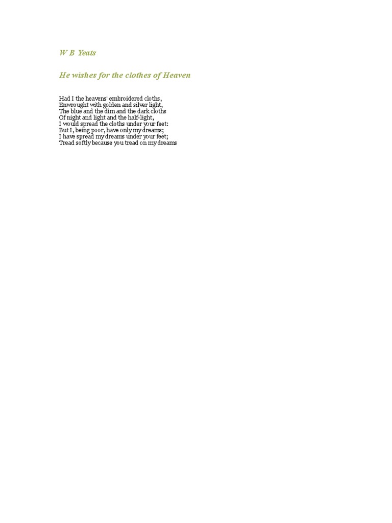 A Short Analysis Of Yeats S He Wishes For The Cloths Of Heaven