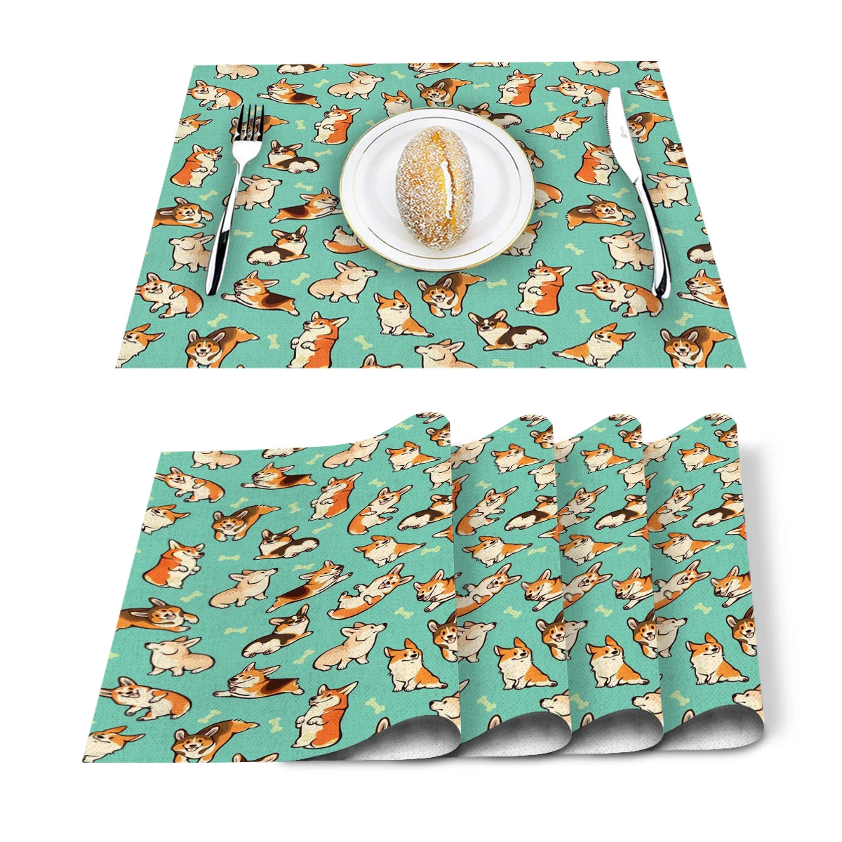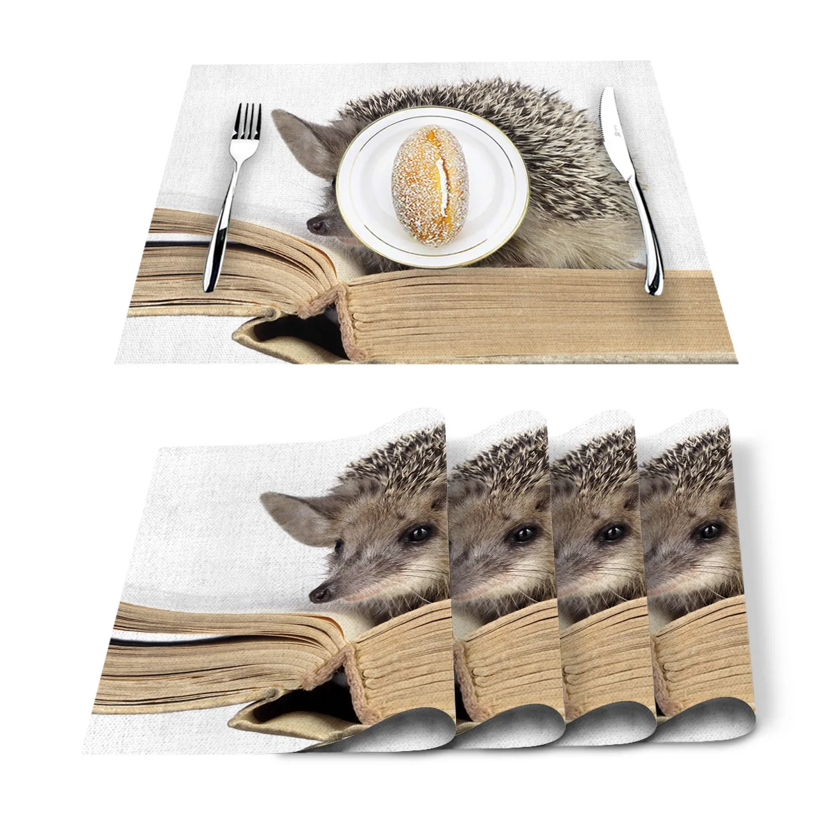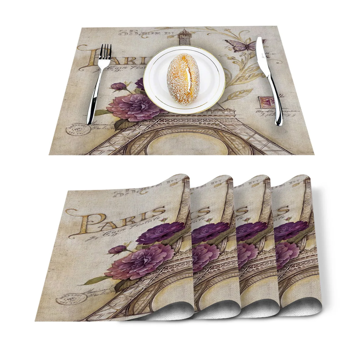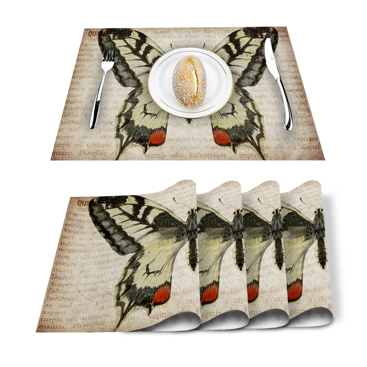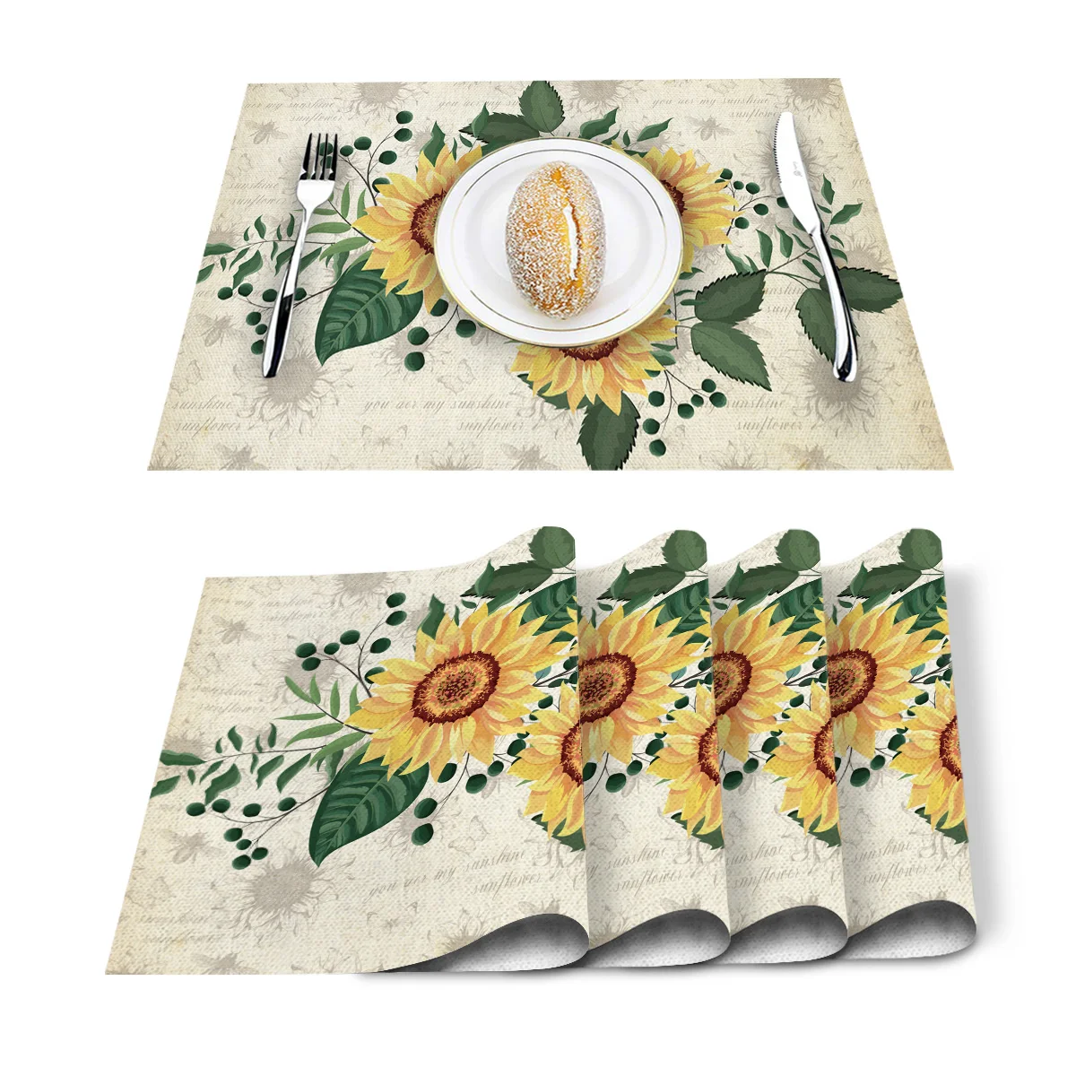 Retro Sunflower Bee Butterfly Placemat Washable Cotton Linen Table