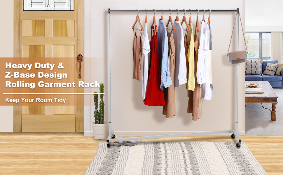 Kingso Rolling Garment Rack Industrial Grade Z Base Clothes Garment Rack Heavy