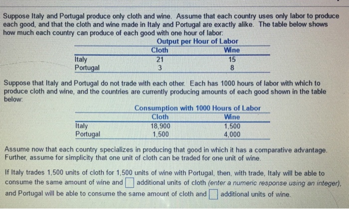 Solved Suppose Italy And Portugal Produce Only Cloth And