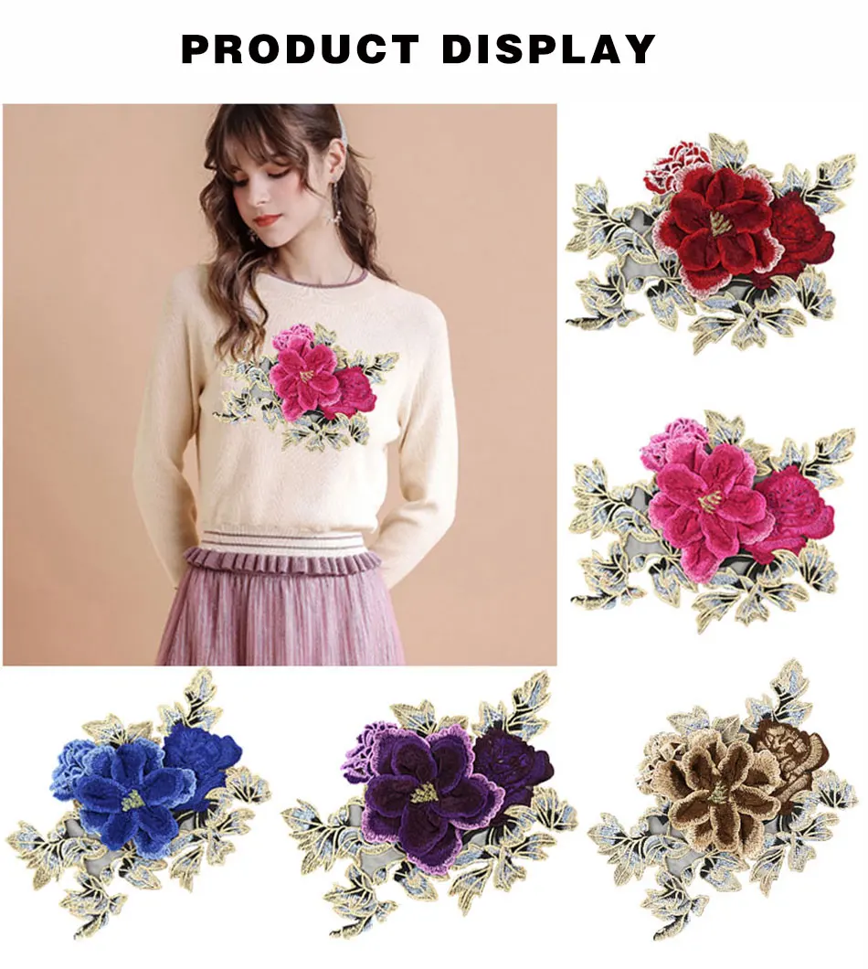 Mayitr Red Rose Flowers Embroidery Patches Diy Patches Clothes