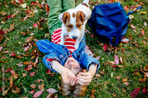 Favorite Household Pet And The Little Boy In The Funny Clothes