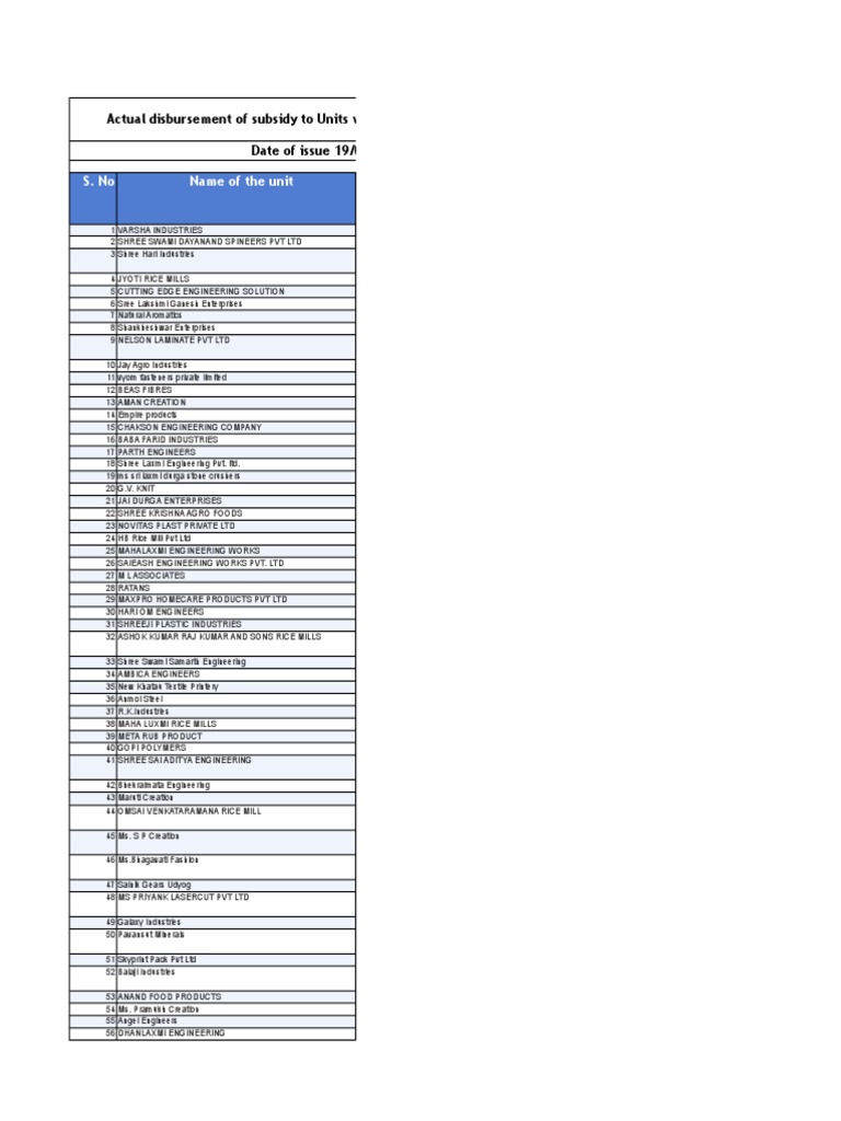 Statement Of Subsidy Claimed Units Upto 31 08 National Small