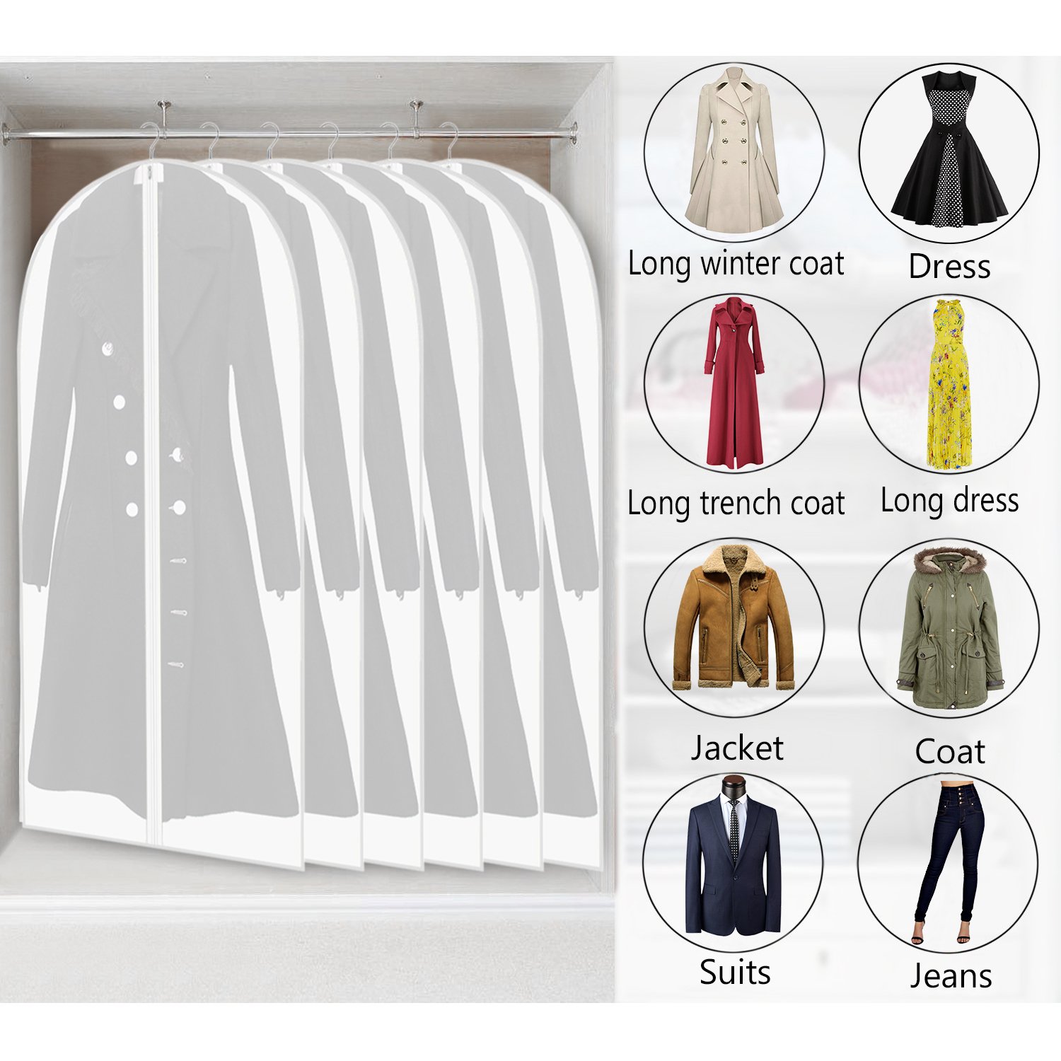 5 Pcs Clothing Covers Clear Bag Moth Proof Garment Bags Breathable