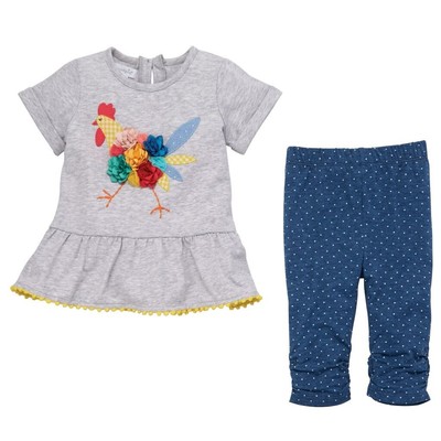 Mud Pie E9 Baby Girl Farm House Chicken Tunic Capri Set 11010072