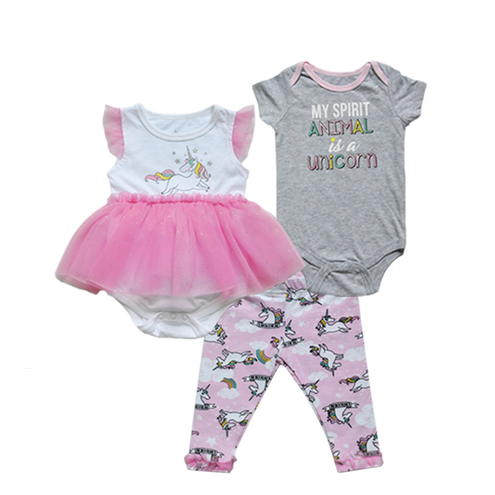 3 Piece Baby Girl Dress Bodysuit Pant Lovely Unicorn Newborn
