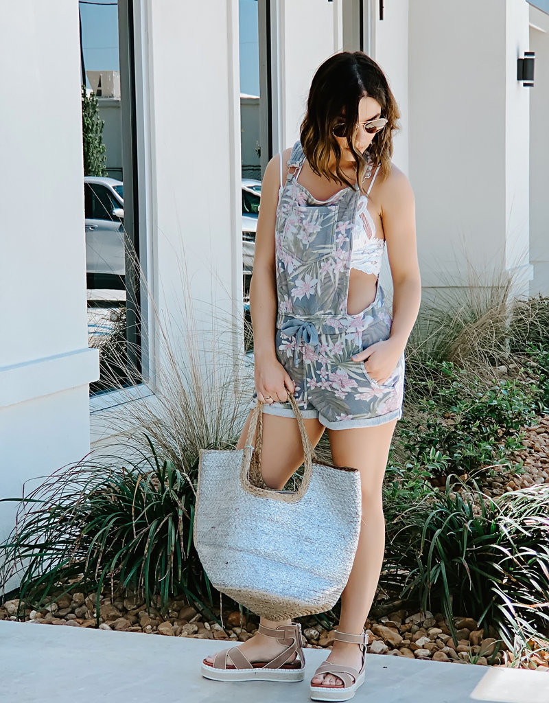 Grey Tropical Print Short Overalls Luna Claire S Skin Care And
