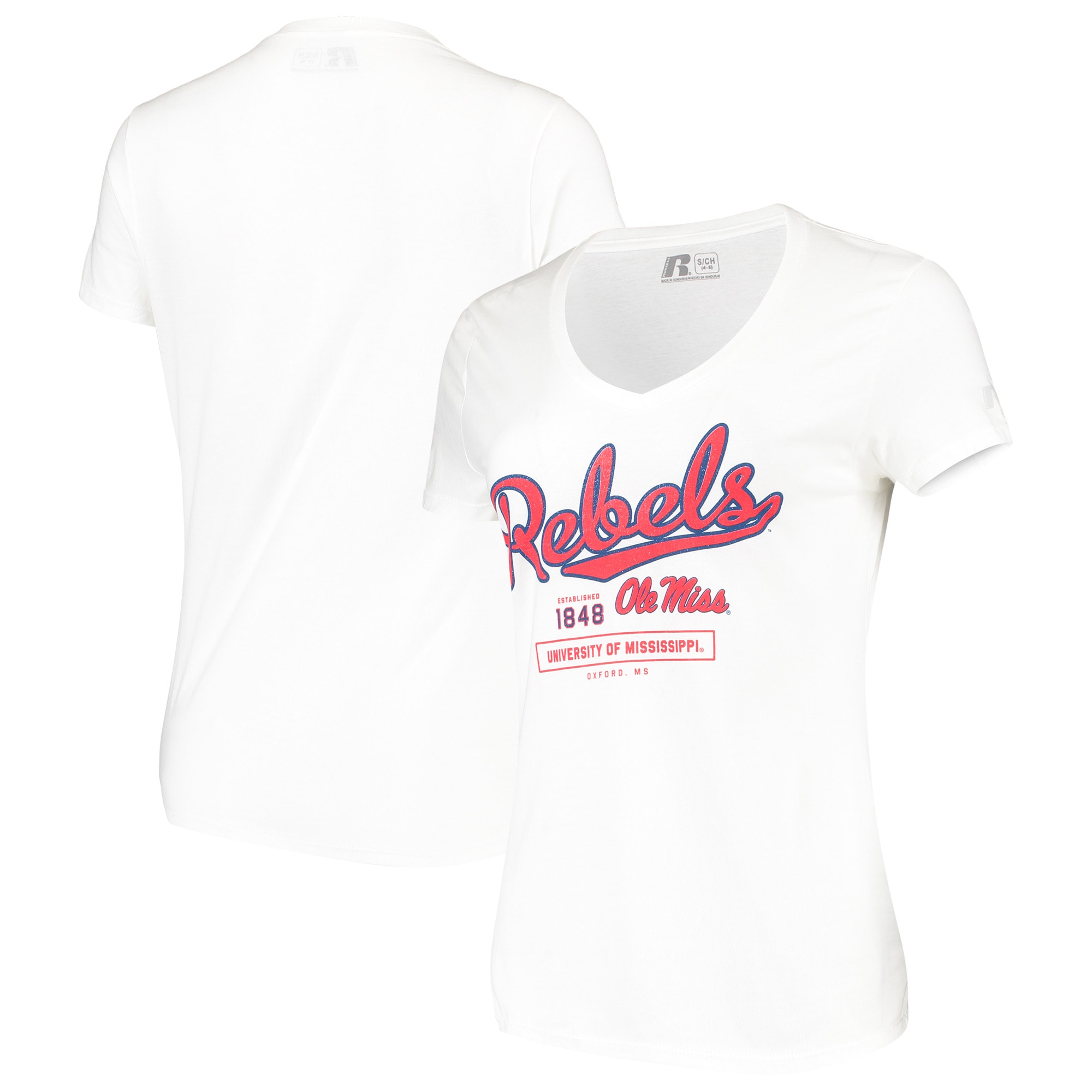 Women S Russell Athletic White Ole Miss Rebels Script V Neck T