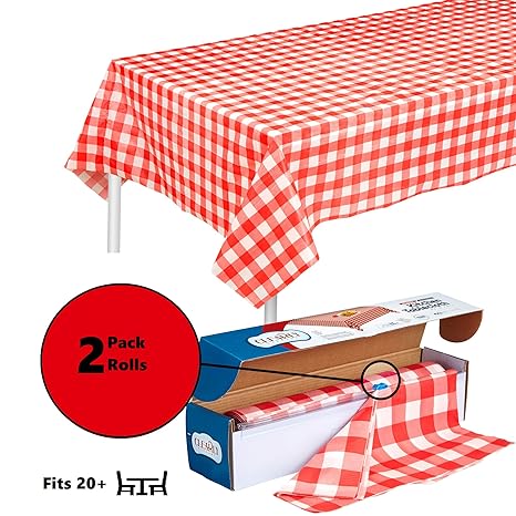Amazon Com Red Gingham Plastic Tablecloth Roll With Cutter 100