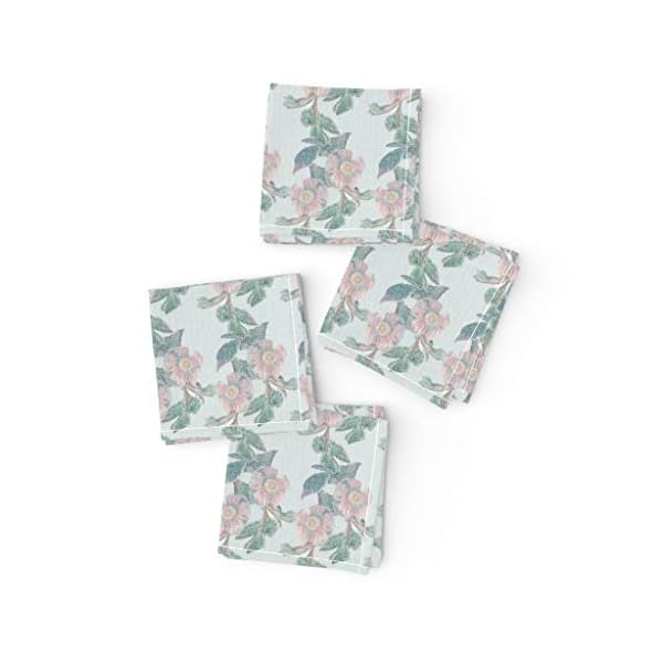 Vintage Pink Floral Cloth Napkins Large Dinner Size Pink Green