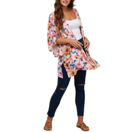 Peach Love California Sweaters Womens Peach Love Floral Kimono