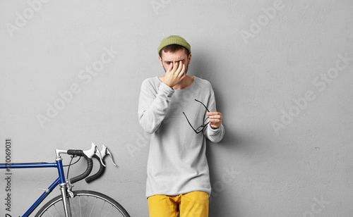 People And Tiredness Concept Young Attractive Male With Thick