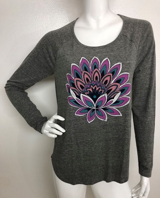 Pink Lotus Reglan Quilted Sweatshirt Sweater Turquoise Gray