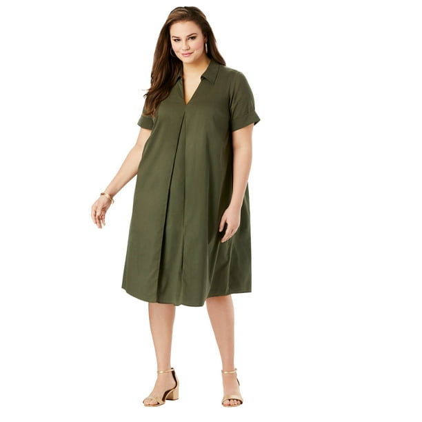 Roamans Women S Plus Size Boatneck Swing Drape Dress With Three