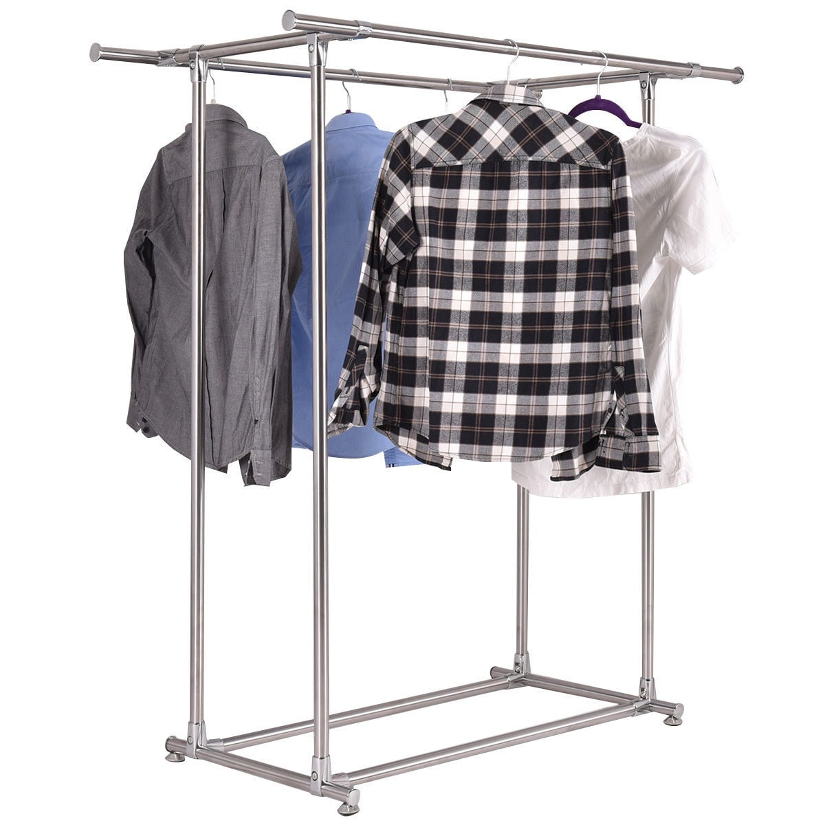 Clearance Heavy Duty Clothes Rack Stainless Steel Double Bar Clothing Garment Racks W Wheels Commercial Garment