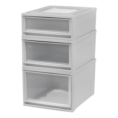 Iris 3pc Stacking Plastic Storage Drawers Gray Target