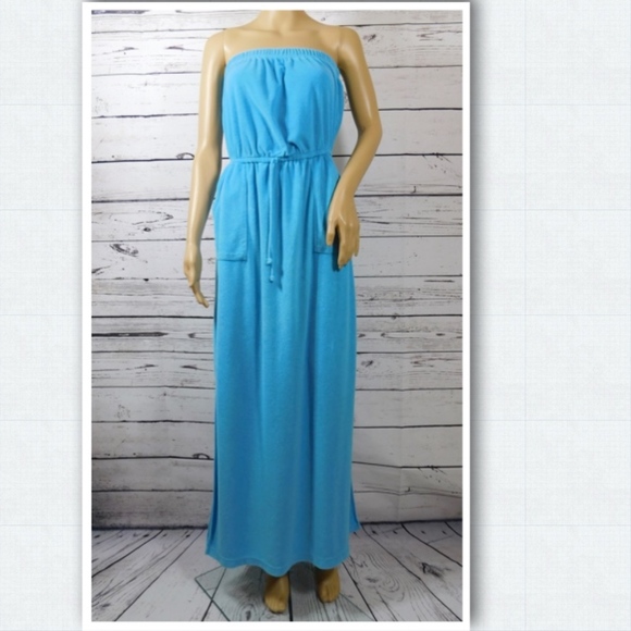 Red Strapless Maxi Dress Vintage 70s Terry Cloth Swim Cover Up
