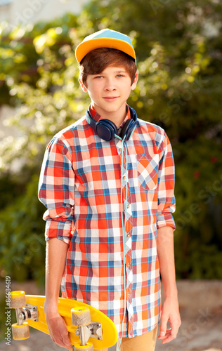 Handsome Teen Boy 14 16 Year Old Wearing Stylish Clothes Outdoors