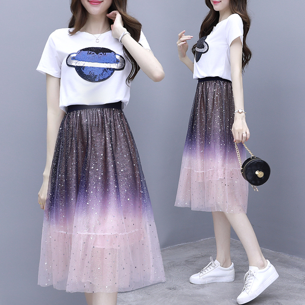 Girls Clothing Sets Summer Star Half Sleeve T Shirt Skirt 2pcs