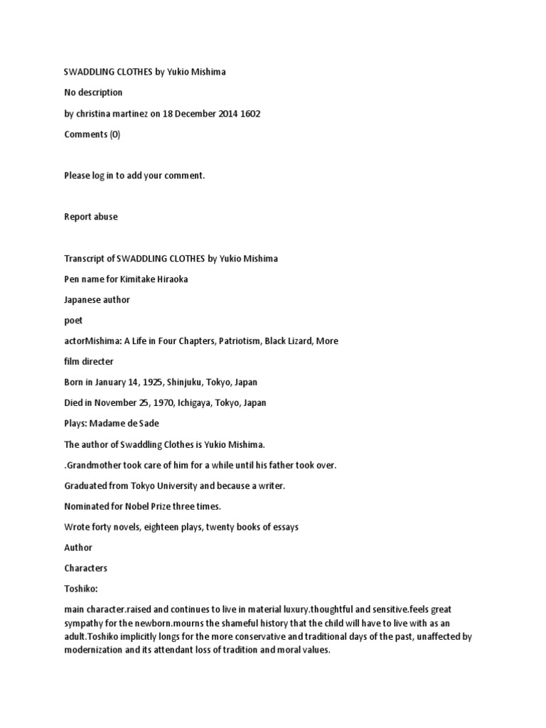 Swaddling Clothes By Yukio Mishima Fiction Literature