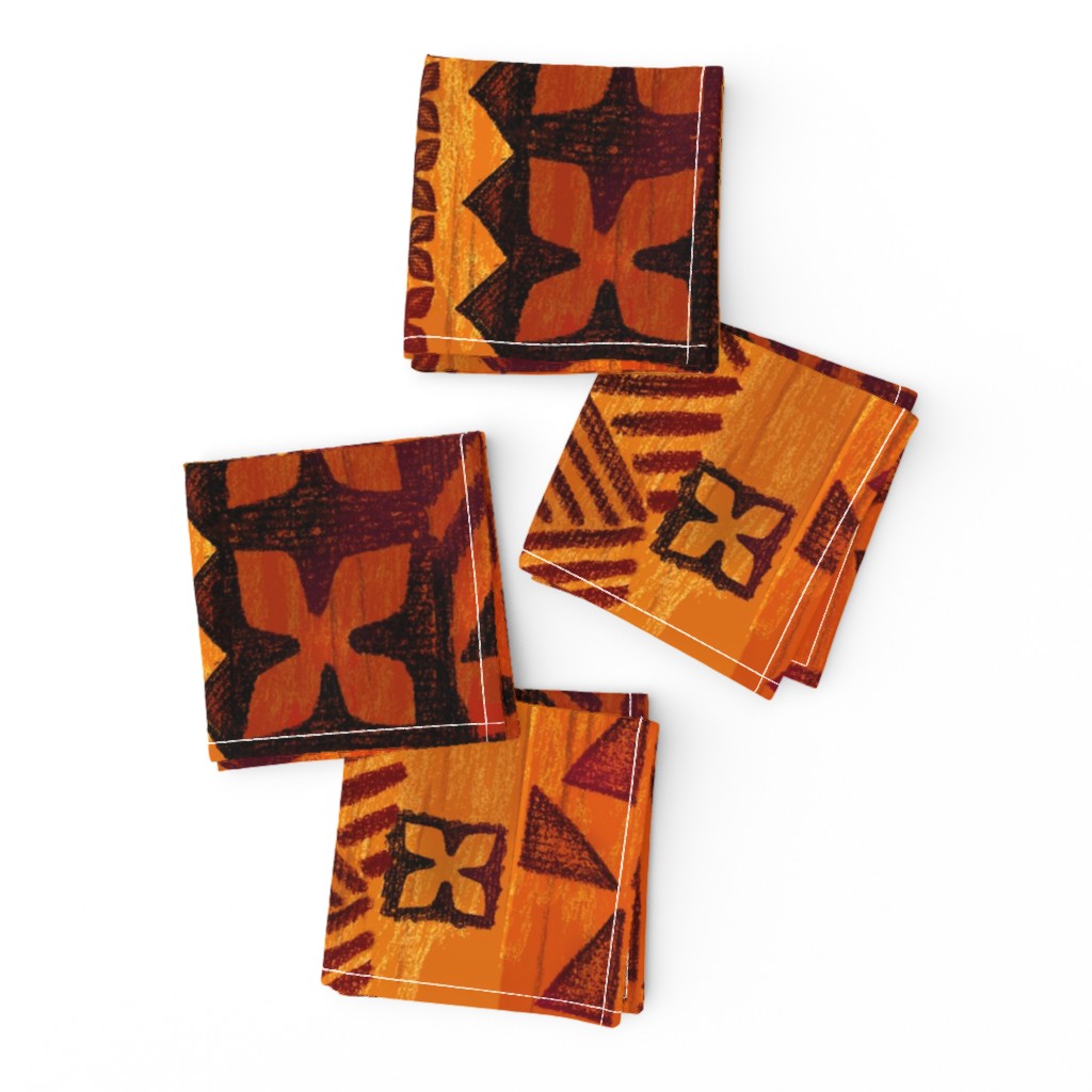 Cocktail Napkins Tiki Tapa Cloth Orange Red Rust Vintage Hawaiian