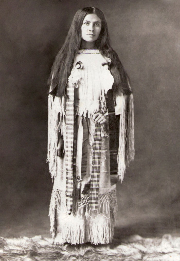 Young American Woman In The Traditional Fur Clothing Of Her Native