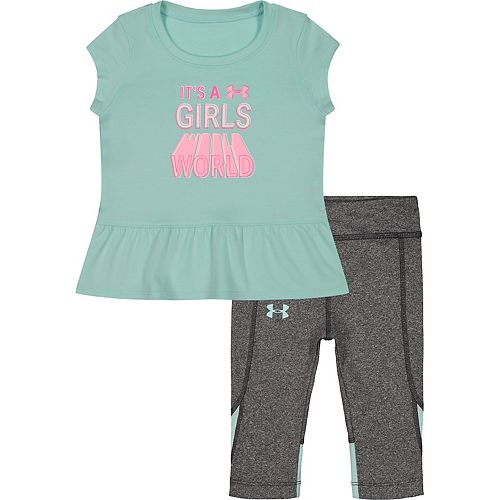 Under armour baby girl clothes. Shop boys toddler under armour and girls toddler under armour for pint sized clothing that transitions with them from season to season. Skip to main content hello sign in. Founded in 1996 with a simple plan to make a superior t shirt that provide compression and wicked perspiration off your skin under armour is today not only the originator of performance apparel but a designer and manufacturer of clothing and gear engineered to keep athletes regular people and kids cool dry and light throughout the course of a game practice workout play time or everyday. Baby boy under armour rising logo tee shorts set sale 2100.